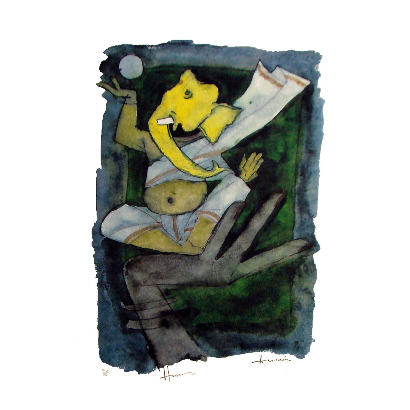 Dancing Ganesha on Hand by M F Husain